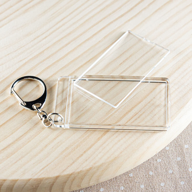 アクリル製(ハメパチ) 長方形66型チルト(金具が本体の端について斜めになります)・キーホルダー37x66mmは斜めに付けられるタイプです。スポーツバッグ、旅行バッグなどに付けると斜めになりますので目をひくキーホルダーですのでお好みのデザインの原稿をカットしてはめ込めてフタをすれば簡単にオリジナルキーホルダーが手作り出来ます。裏表使えるパーツです。