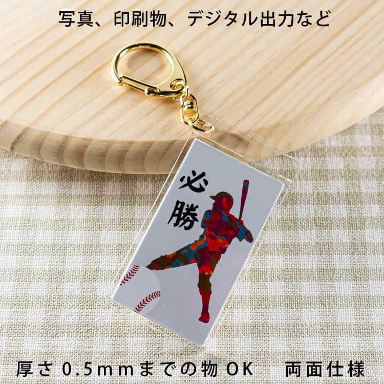 人気のスポーツ金具(特別仕様)キーホルダーには野球ボール、サッカーボール、バレーボール、バスケットボールの4種類、応援グッズや大会記念品などにチルトタイプの長方形66型キーホルダーでオリジナル製作しませんか。