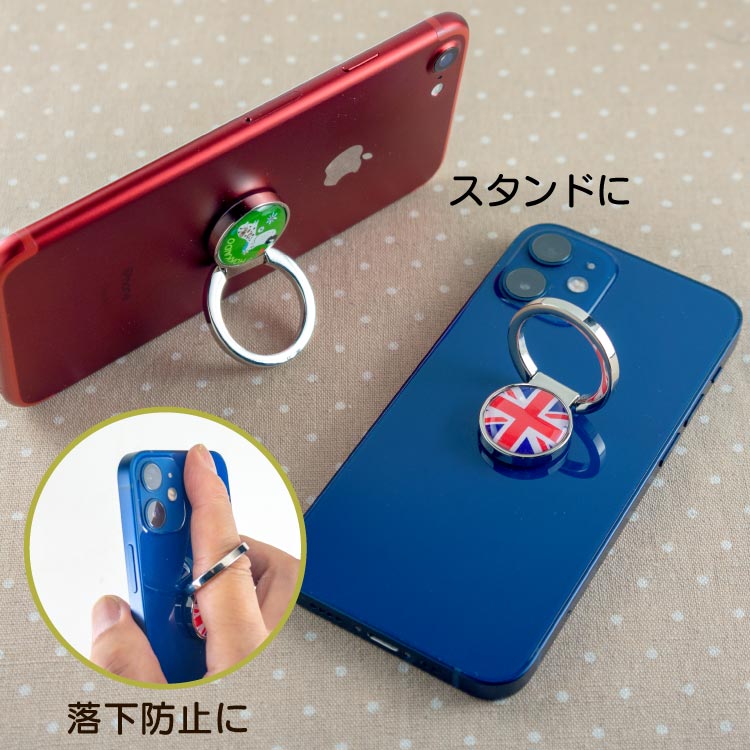 スタンドにもなりますので動画を見たりする時に便利、リングに指を入れて落下防止としても使用できる便利なスマホアイテムです。会社、学校、各種スポーツなどで記念品としても喜ばれるグッズです。