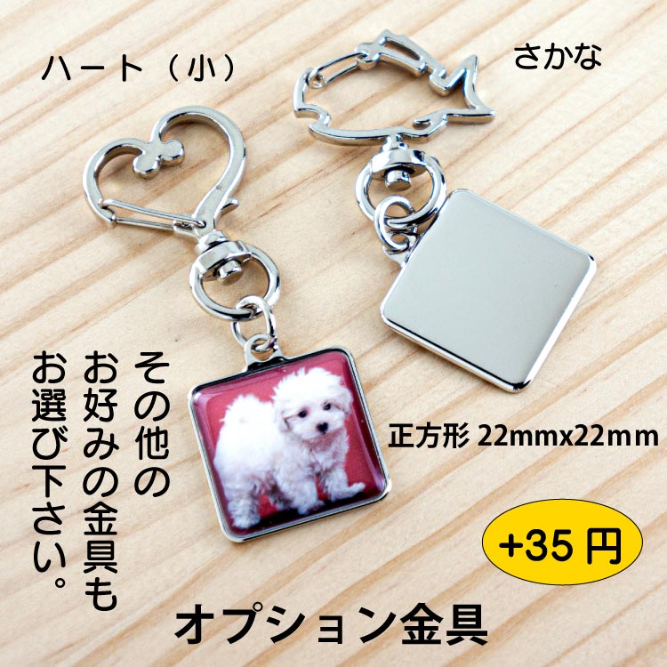 お好みの金具をお選び下さい。オプション金具は+35円で正方形キーホルダー製作いたします。